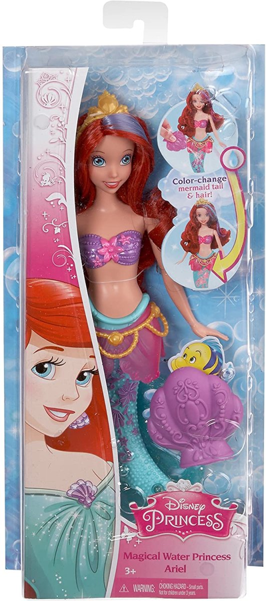 La collection Magical Water Princess comporte 3 poupées vendues séparément: Ariel, Aurore et Cendrillon. C’est la toute dernière collection sortie par Mattel avant que Hasbro ne récupère la licence Disney Princesses. Pour cette raison, elle a été peu produite, peu commercialisée et elle est relativement rare.