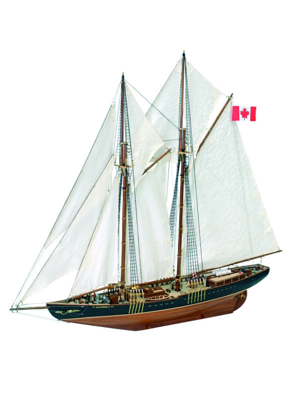 Construisez votre modèle réduit à l´échelle 1/75è du Bluenose II, possiblement le bateau canadien le plus connu. Notre kit contient des pièces en contreplaqué de bouleau découpées au laser pour former la structure de la coque. La découpe laser permet un assemblage simple et précis. Une fois montée, la coque est lattée avec du bois de bouleau et de sappelly. Un très beau et complet accastillage fabriqué en bois, en métal injecté et en photo-découpe en laiton vient enrichir la maquette. Les fils sont en coton et les voiles sont cousues pour être facilement posées. En bonus, un support et une plaque métallique avec le nom du bateau!