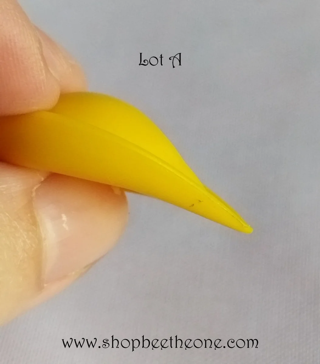 Le lot B est composé de deux chapeaux jaunes identiques. Le lot est propre et en l’état. L’un des chapeaux a beaucoup de petites traces d’usure et de petites taches. L’autre a un grand défaut de coulure dans le plastique