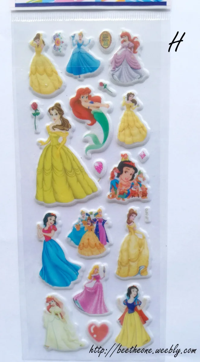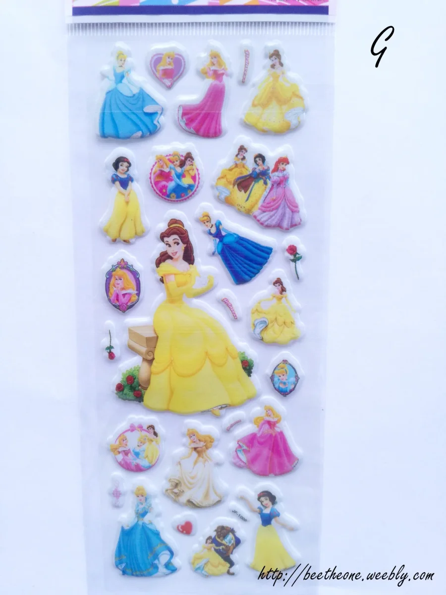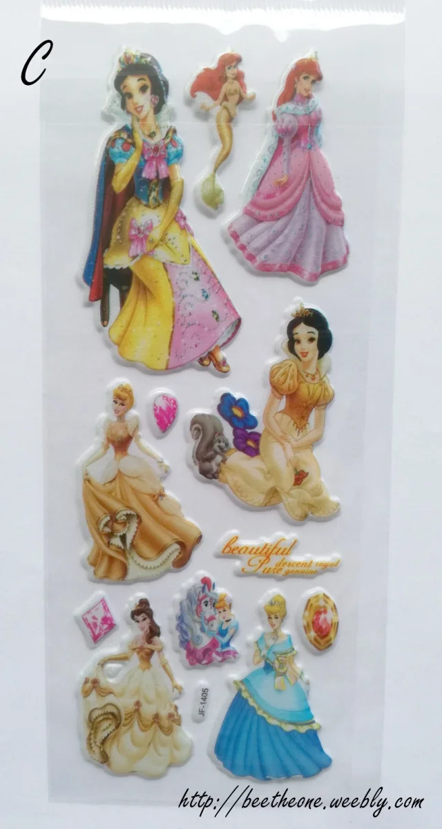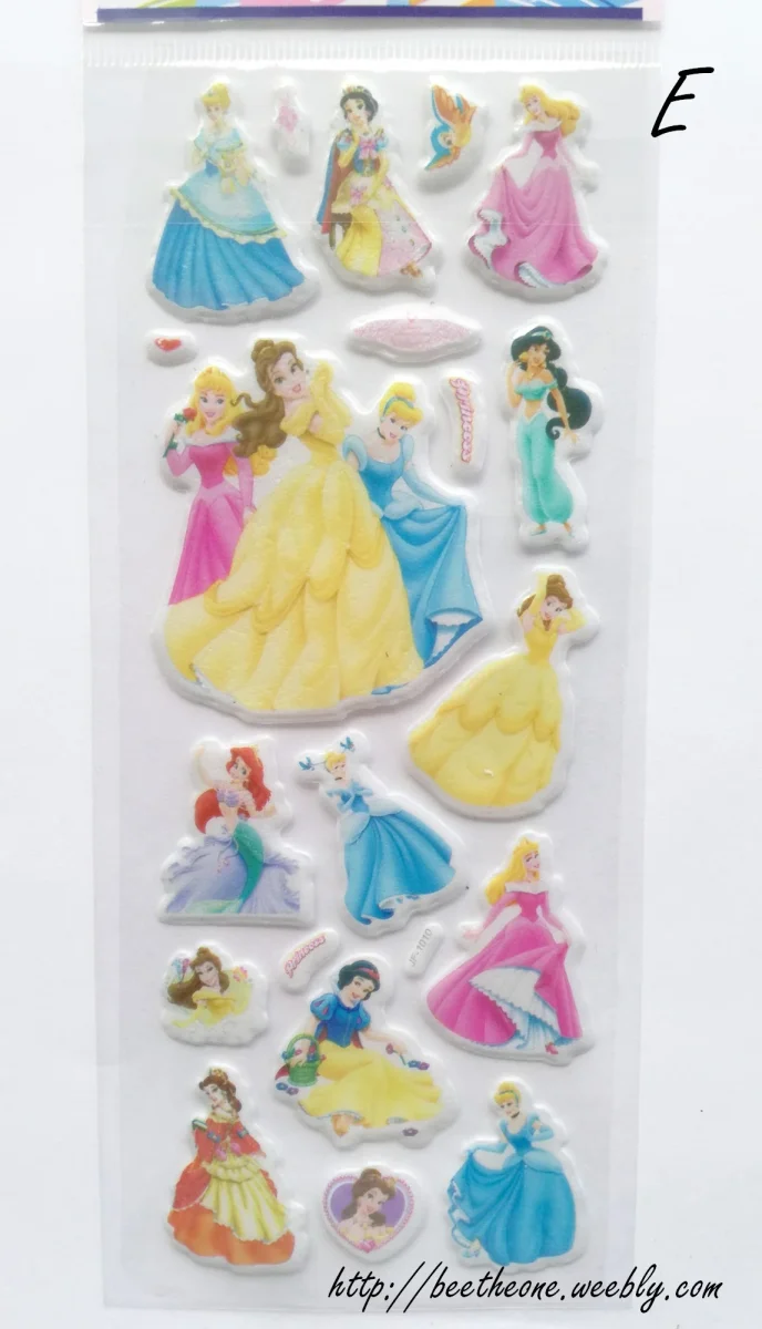 Onze modèles différents de planches de stickers autocollants en relief avec 6 princesses