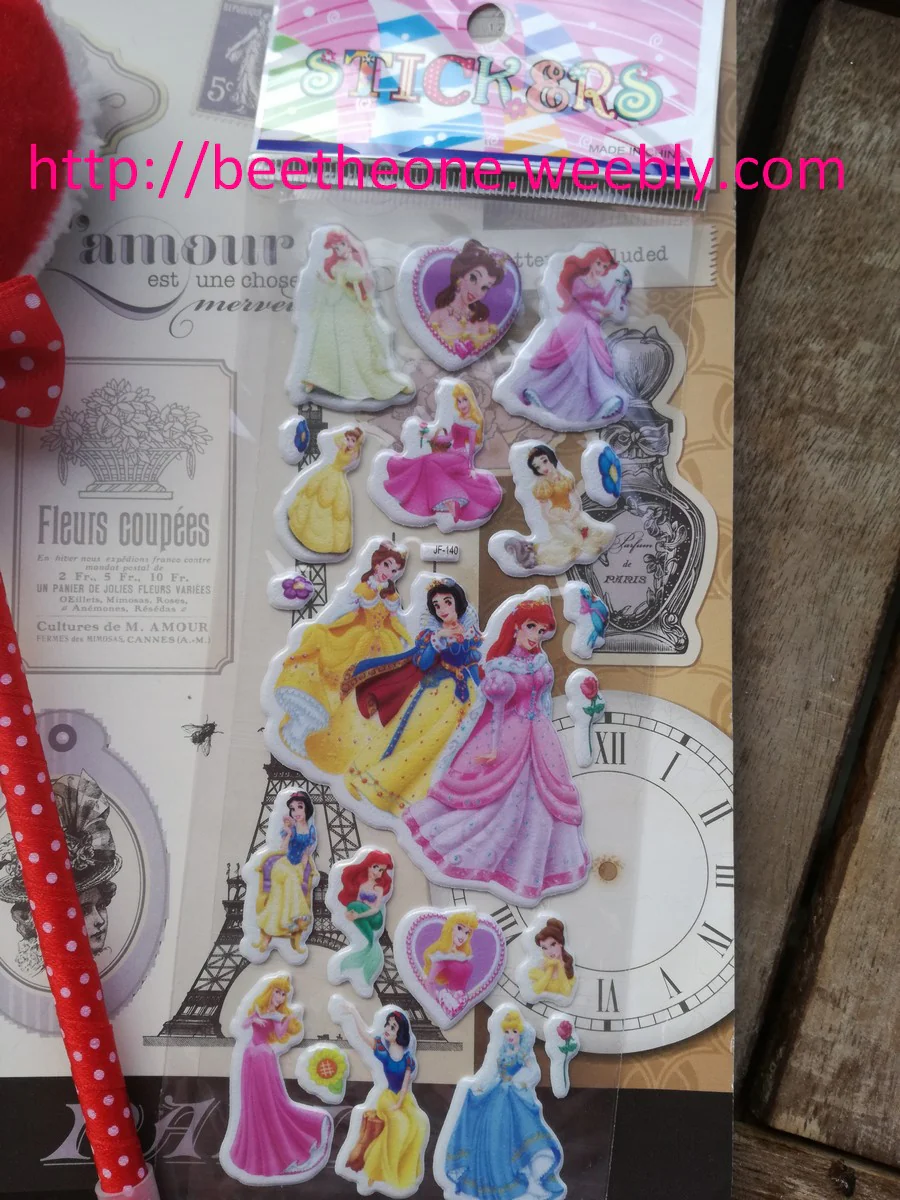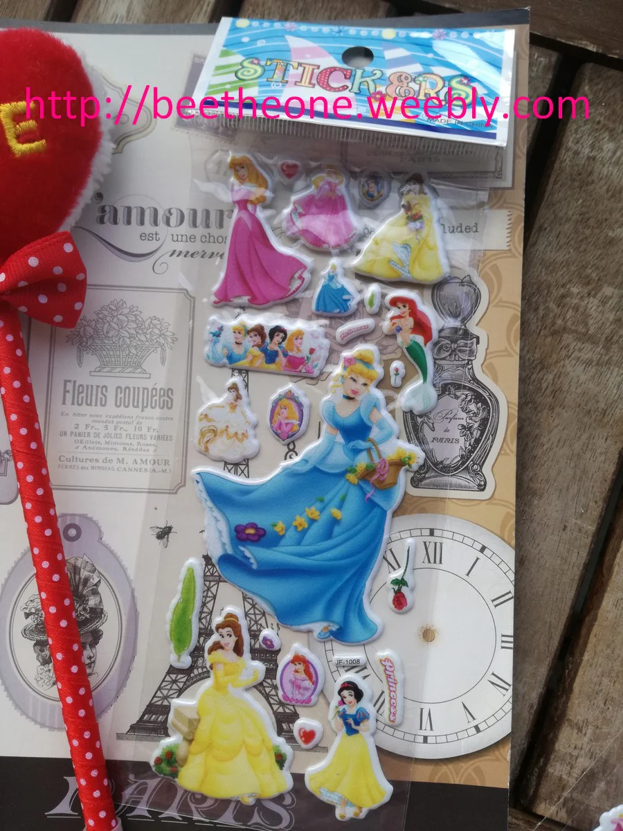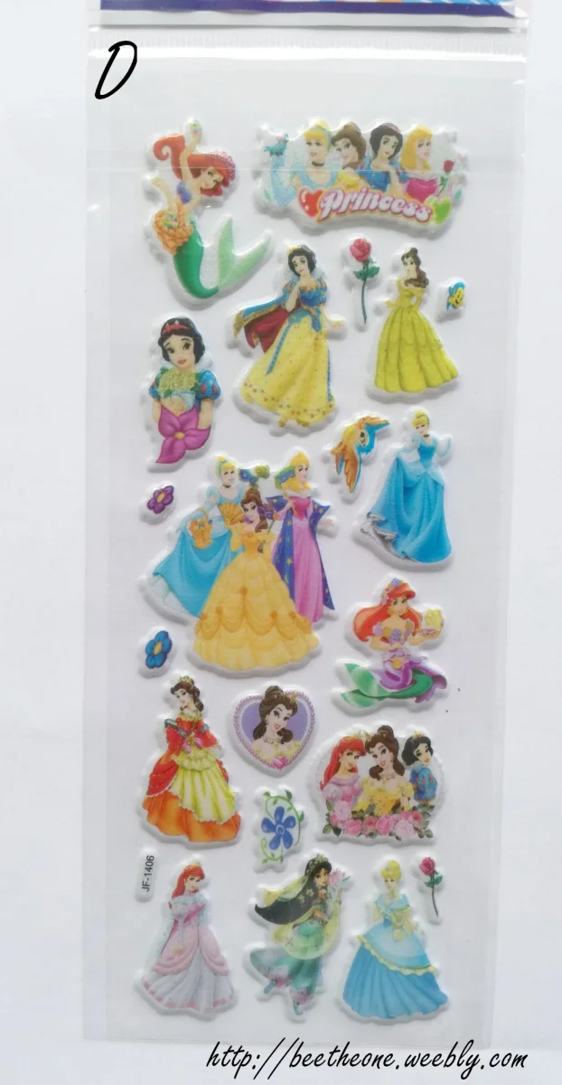 Onze modèles différents de planches de stickers autocollants en relief avec 6 princesses