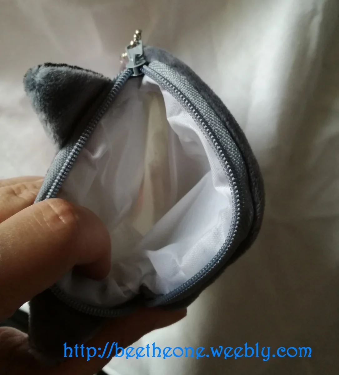 En peluche de coton, avec fermeture à glissière en plastique et doublure intérieure synthétique