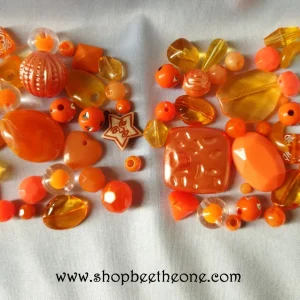 Lot mix de Perles variées en acrylique – de 4 à 25 mm – Camaïeu orange – à trier