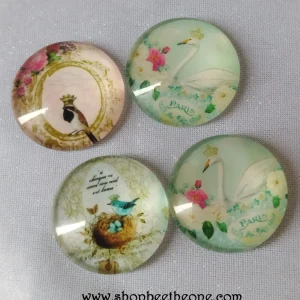 Cabochon rond en verre loupe avec image « Oiseaux couronnés » – 25 mm – 3 modèles – DERNIERES PIECES