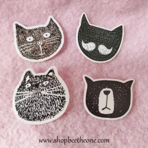 Sticker autocollant « Tête de Chat poilu » sur papier glacé – 4 modèles