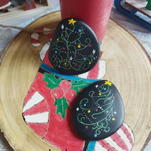 Galet peint Décoration de Noël « Sapin de Noël » – plusieurs tailles et motifs – par Bee the One