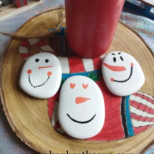 Galet peint Décoration de Noël « Bonhomme de neige » – plusieurs tailles et motifs – par Bee the One