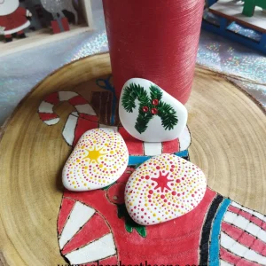 Galet peint Décoration de Noël « Etoile de Noël et houx » – plusieurs tailles et motifs – par Bee the One